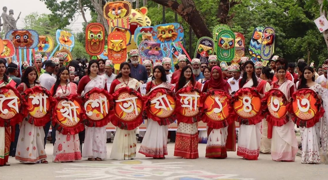 উদ্বোধনী পর্ব শেষে চারুকলা স্কুলের উদ্যোগে শিক্ষক-শিক্ষার্থী, কর্মকর্তা-কর্মচারীদের স্বতঃস্ফূর্ত অংশগ্রহণে বের হয় বর্ণাঢ্য বৈশাখী শোভাযাত্রা। মুখোশ, আলপনা, ঢাক-ঢোল, কাঠের কারুকাজ এবং নানা ঐতিহ্যবাহী উপকরণে সজ্জিত শোভাযাত্রাটি পুরো ক্যাম্পাস প্রদক্ষিণ করে। শোভাযাত্রার প্রতিটি অনুষঙ্গে ফুটে ওঠে গ্রামীণ জীবন, লোকজ ঐতিহ্য ও বাঙালির হাজার বছরের সংস্কৃতির বহুমাত্রিক রূপ।