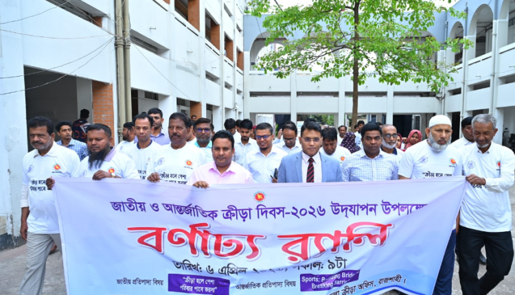 রাজশাহীতে জাতীয় ও আন্তর্জাতিক ক্রীড়া দিবস উদযাপন করা হয়েছে। এ উপলক্ষে সোমবার (৬ এপ্রিল) সকালে জেলা প্রশাসকের কার্যালয়ের সামনে থেকে একটি বর্ণাঢ্য র্যালি বের করা হয়।