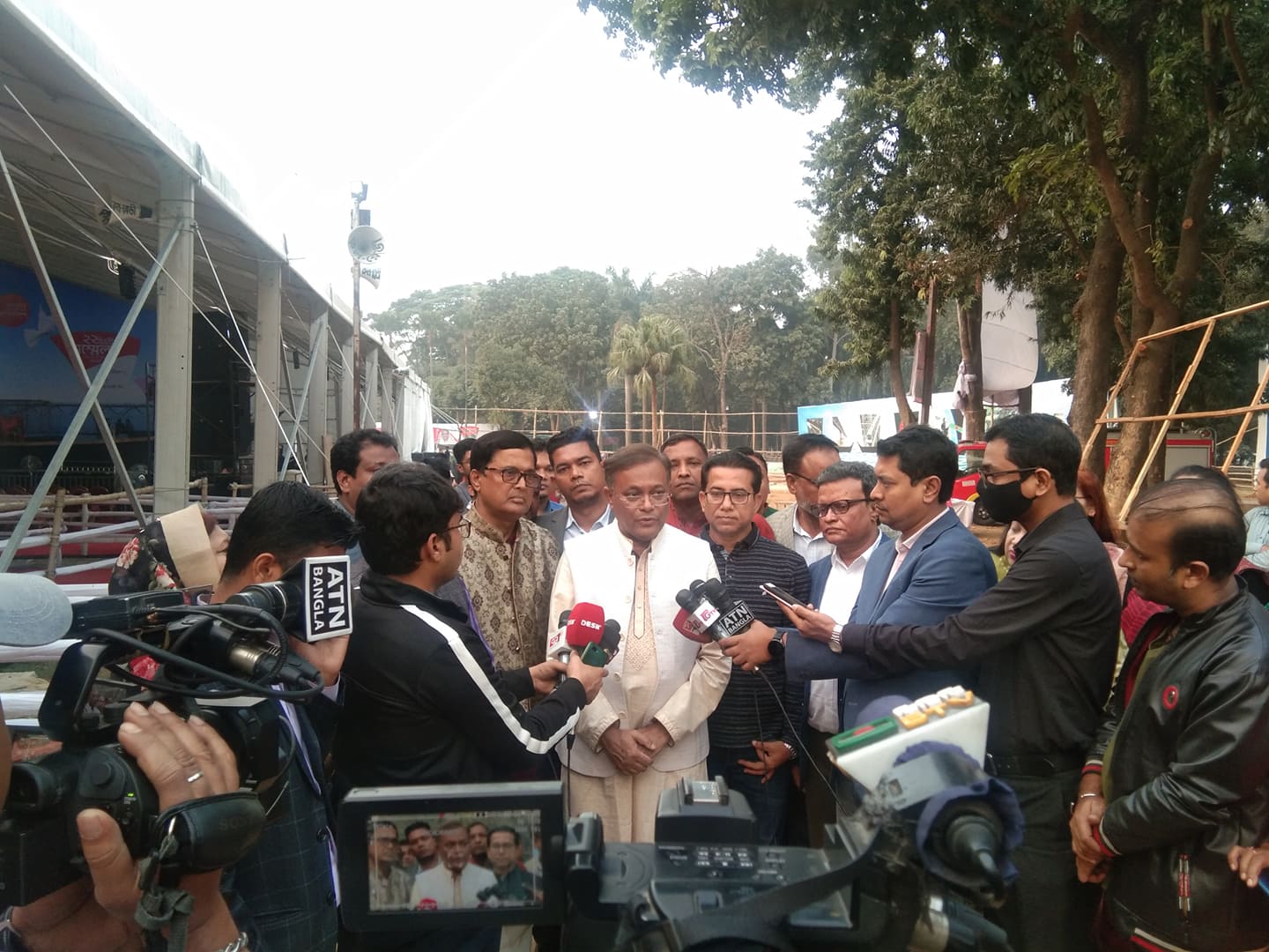 নির্মীয়মান মঞ্চ ও আসনস্থল পরিদর্শনকালে আওয়ামী লীগের উপ-প্রচার ও প্রকাশনা সম্পাদক আমিনুল ইসলাম আমিন, সাবেক এমপি মো: নবী নেওয়াজ, ঢাকা মহানগর দক্ষিণ আওয়ামী লীগের প্রচার ও প্রকাশনা সম্পাদক আক্তার হোসেন, মুক্তিযুদ্ধ বিষয়ক উপ-কমিটির সদস্য আ হ ম তারেক উদ্দীন, প্রচার ও প্রকাশনা উপ-কমিটির সদস্য মোহান্মদ রাশেদুল ইসলাম প্রমুখ মন্ত্রীর সাথে ছিলেন।